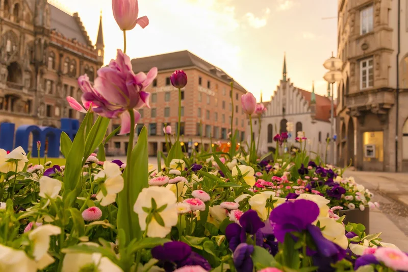 Мюнхен, Германия - весенняя клумба на Мариенплац. Источник фото: 123rf.com